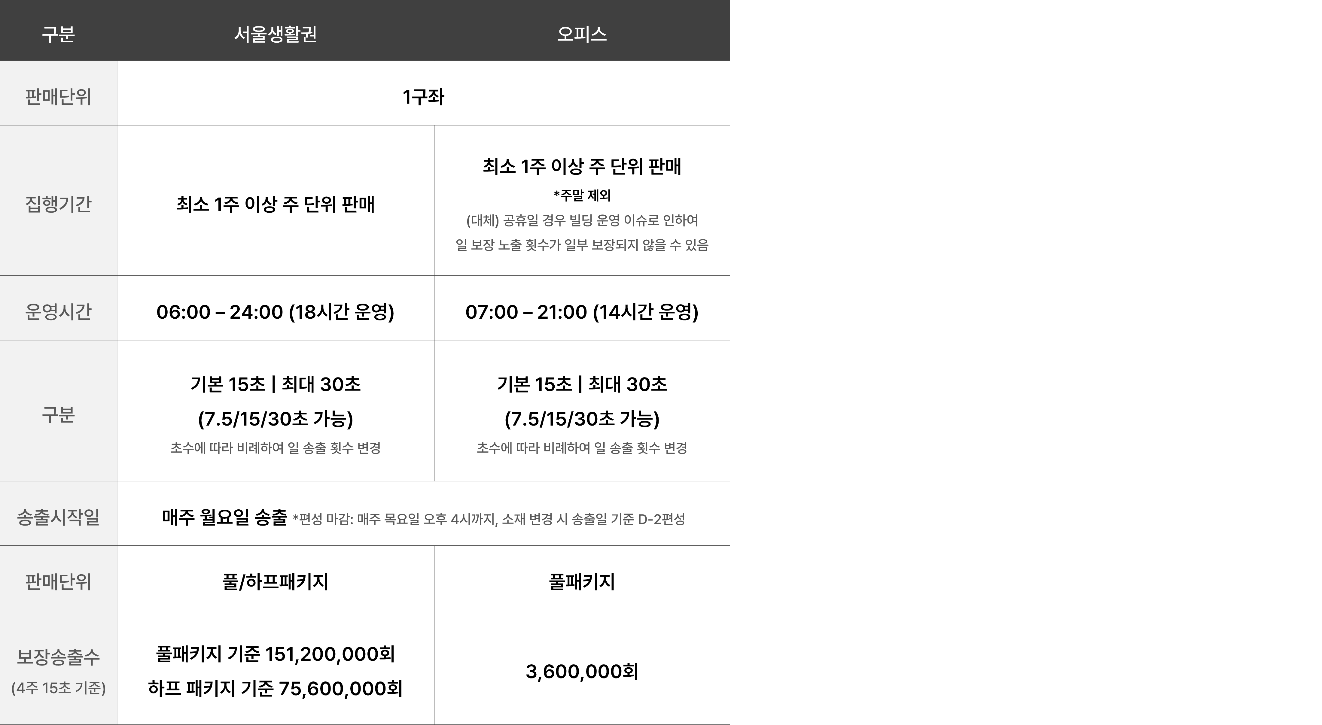 *하프패키지 : 서울생활권 아파트 엘리베이터TV 를 아파트 단지당 동 단위를 ½로 나누어 지역 커버리지는 동일하되, 밀도를 낮춰 집행할 수 있는 상품